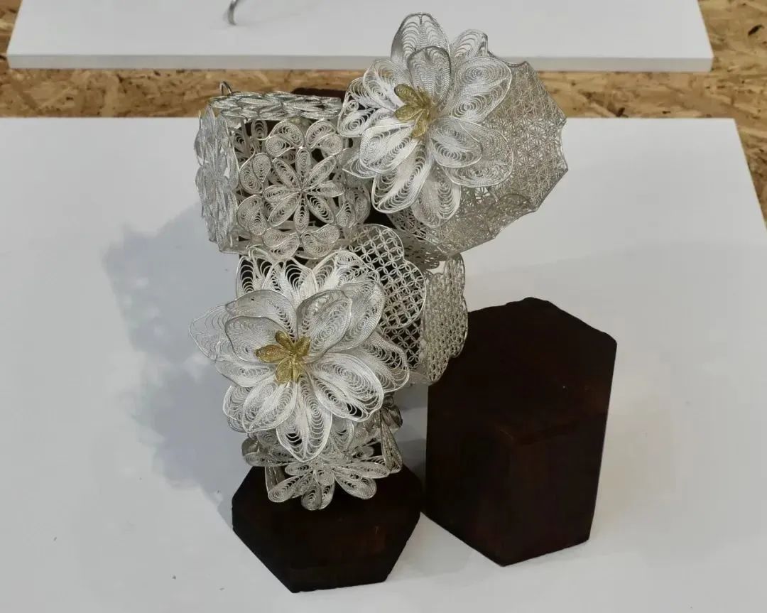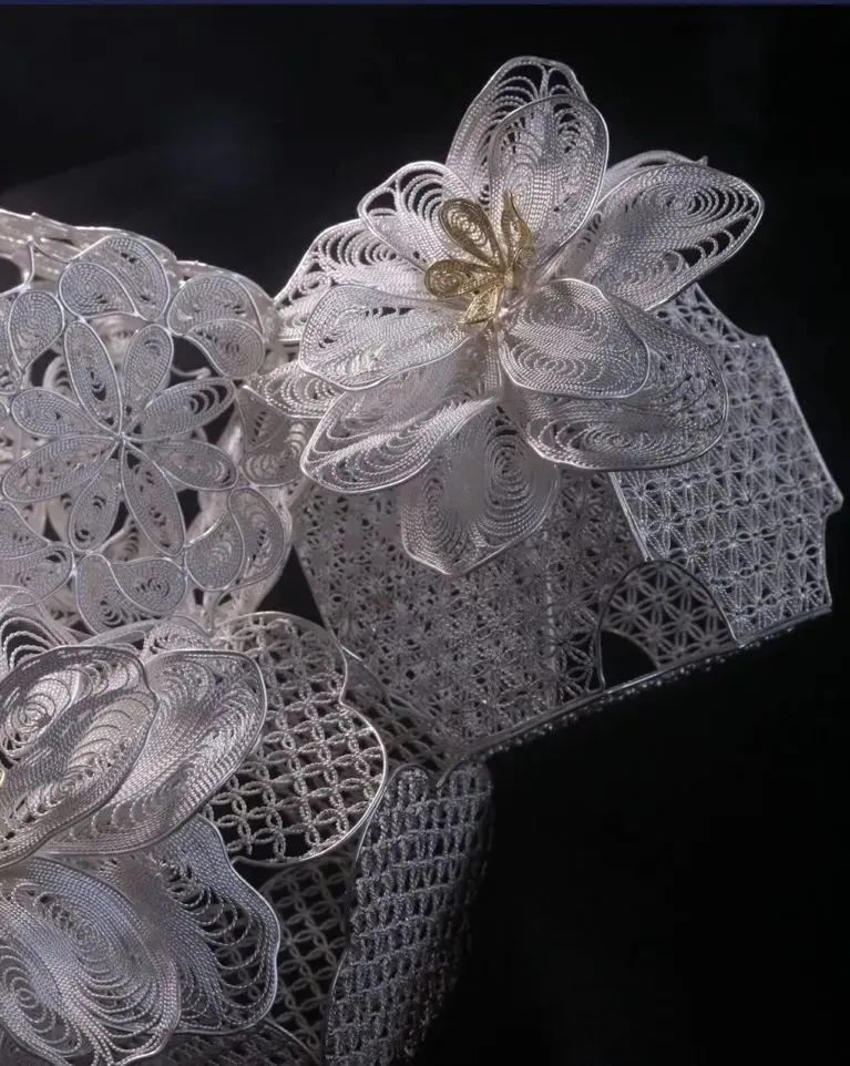 作品靈感來自中國戲曲《牡丹亭》,喚起了她對女性在社會中生存的思考。她用精致而復雜的金絲工藝來表達女性在社會挑戰環境中的力量和韌性。