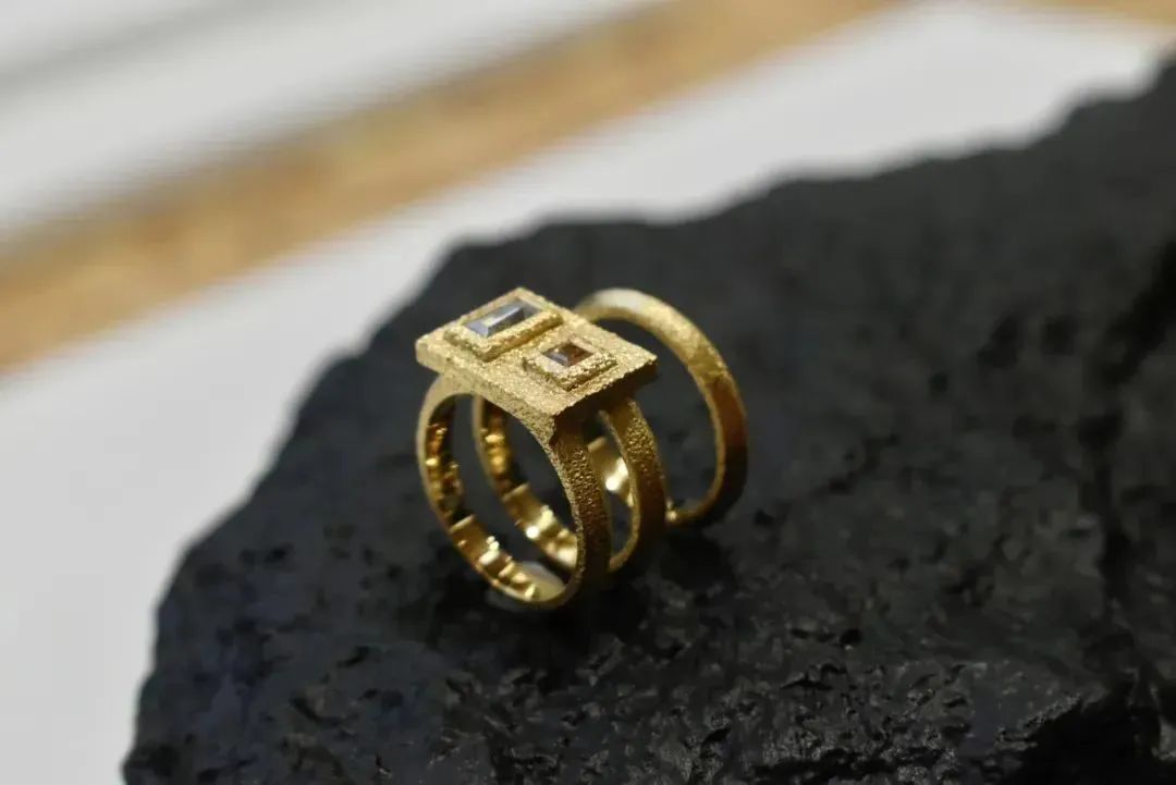 Augusta試圖將野獸派建筑的大膽的幾何形狀和原始質感轉化到珠寶設計中。這些戒指以生混凝土的紋理和形態為基礎,展現出獨特的視覺效果和觸感。
