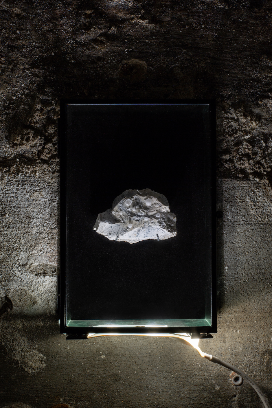 我在安特衛(wèi)普的一個地堡里虛構(gòu)建造了一間城市考古實驗室(建立于2430)邀請觀眾進入這個沉浸式空間來探索未來的考古發(fā)現(xiàn)和檔案。在這里展示的物品反映了21世紀城市生活的碎片。比如:建筑工地的磚塊,超級市場的收據(jù)單,房屋住宅的柵欄以及街道路面的口香糖,這些可識別的物體隨著時間的推移轉(zhuǎn)變?yōu)榫哂兄参铮瑒游锘蚴堑V物特征的生物形態(tài)。