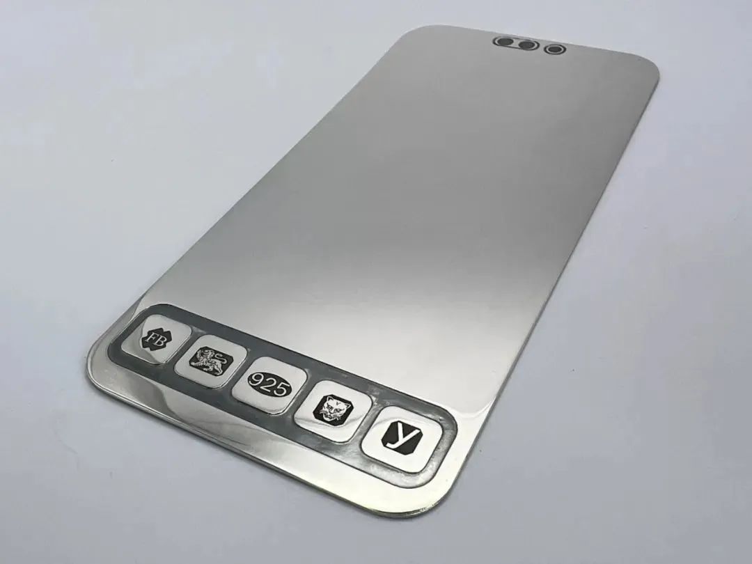 這件作品是以925純銀制成的iPhone形狀,應(yīng)用程序呈現(xiàn)英國倫敦驗金局的品質(zhì)標志。