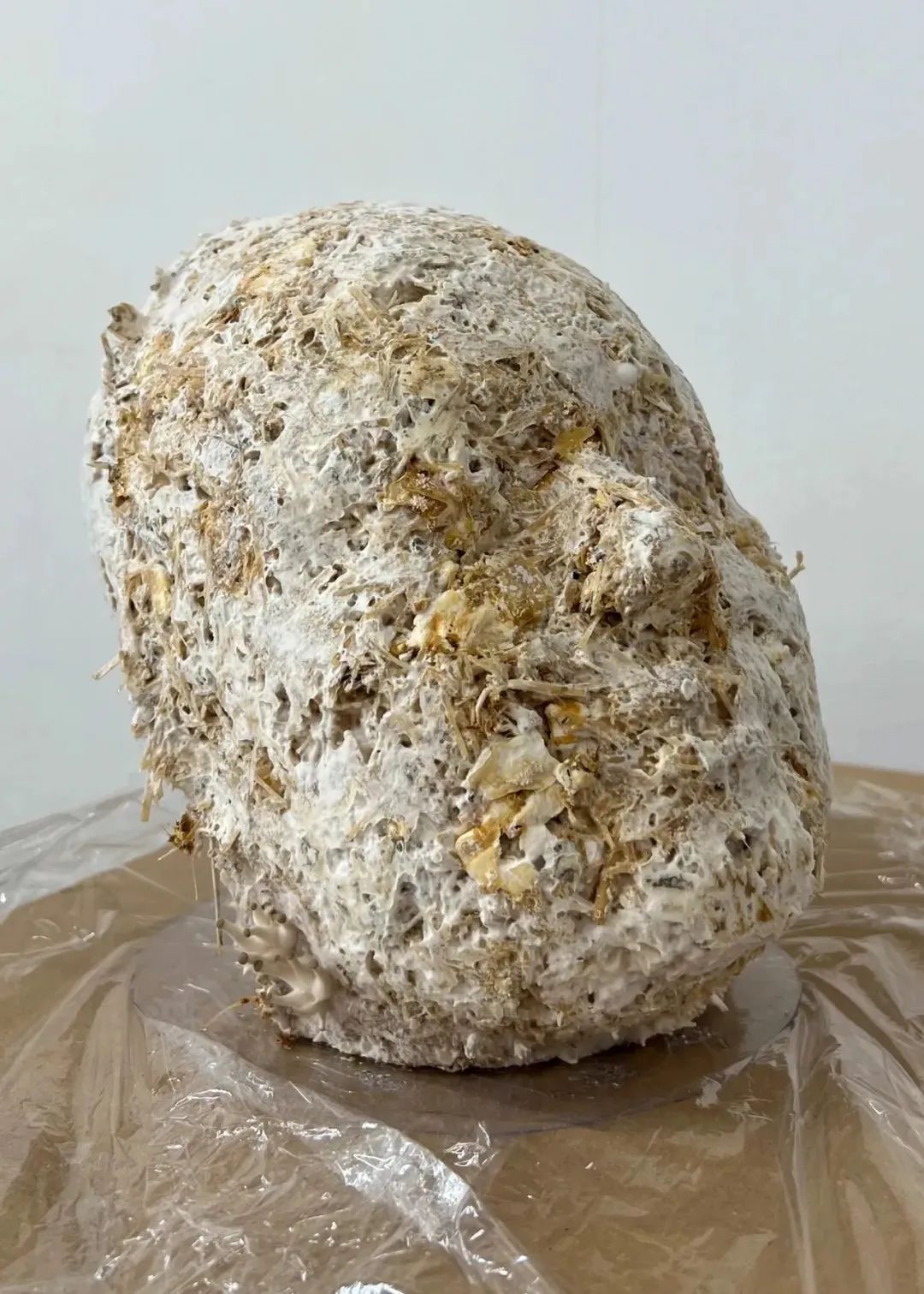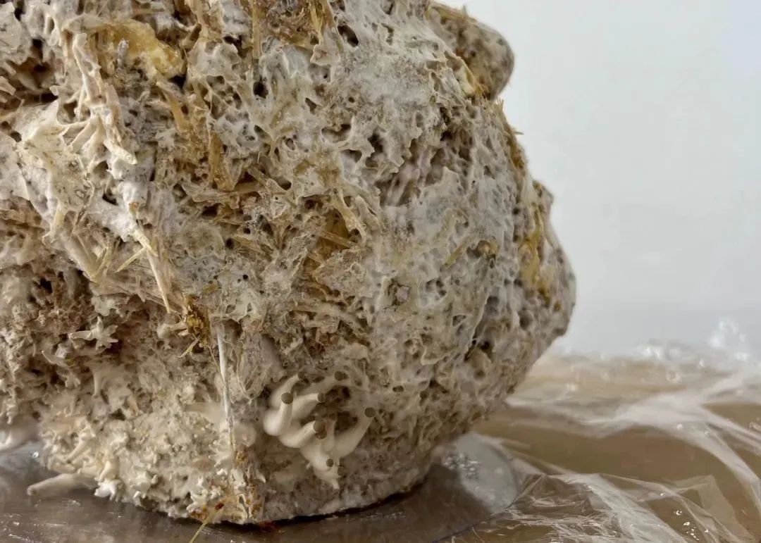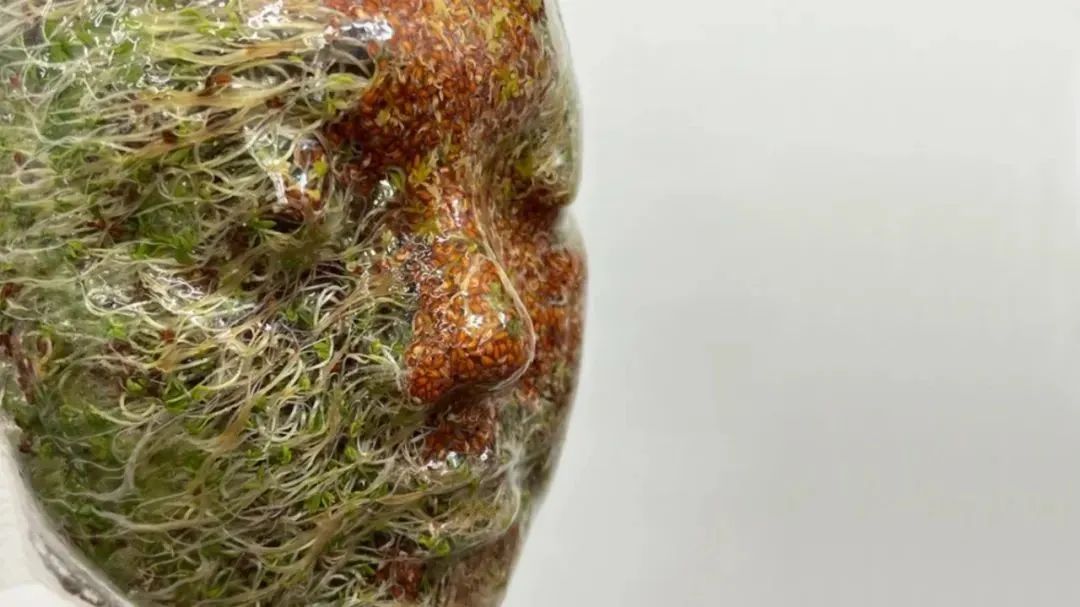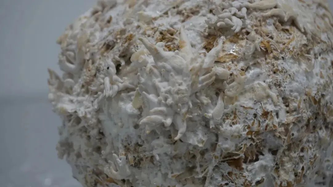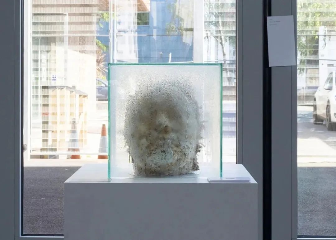 Continuu是一件由活的牡蠣菇菌絲體制成的藝術家頭像雕塑。這件作品是葉舍對生與死循環性質的反思;理解并接受,為了在這個星球上維持自身,我們應該維護作為整體存在的網絡,而我們也是其中的一部分。這個雕塑是活的,將會繼續生長出可以收獲和食用的蘑菇。