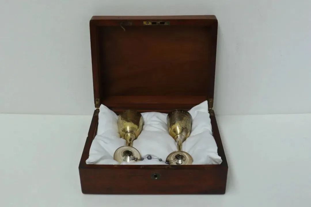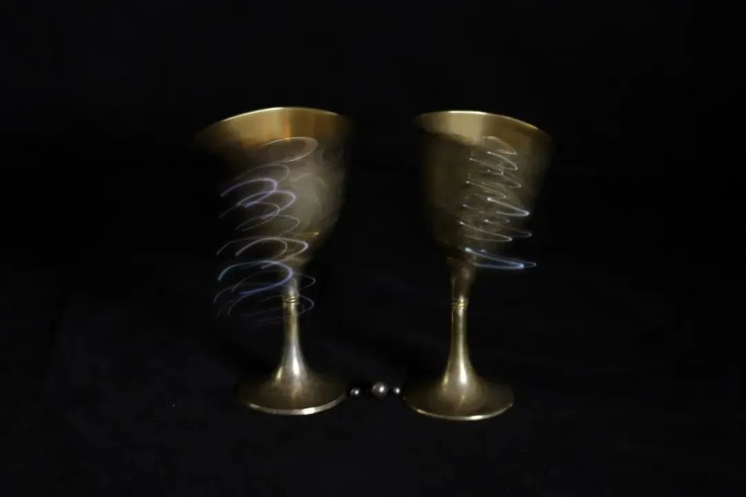 這一對酒杯,它們在底部由一串珍珠相連,并且杯中仿佛盛著美酒。人們可以敬杯來表達彼此之間的關系,同時也象征著兩個相似頻率的相似事物之間的共鳴,一種一對一的關系。