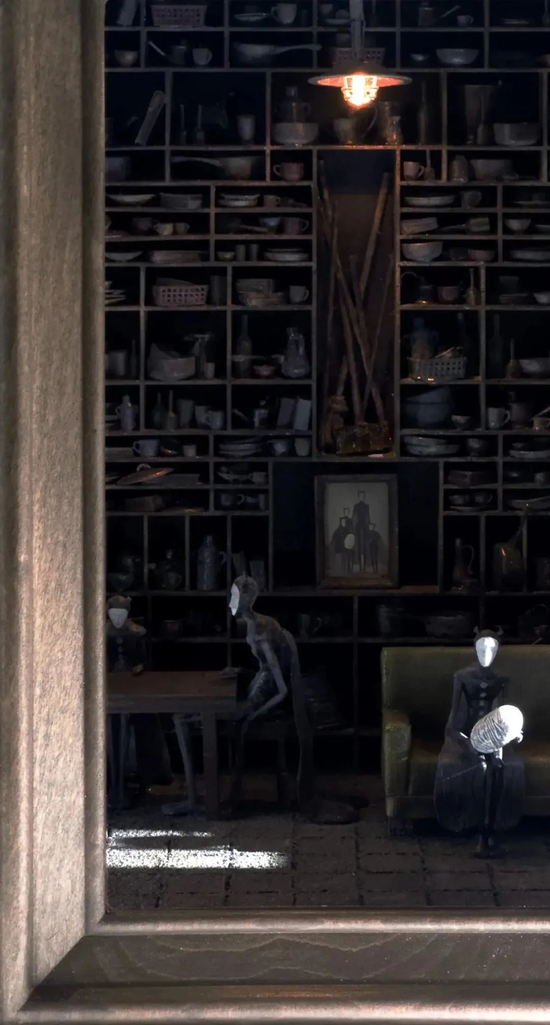 在昏暗的光線下,蛾的家庭充滿瑣事,家庭成員之間有一種超然的氛圍。