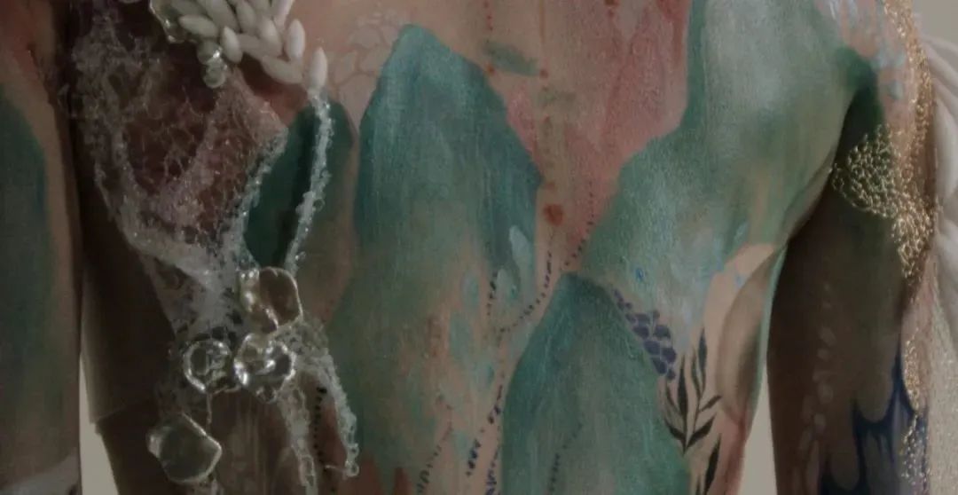 這個實驗性紡織品是藝術家對大自然強大再生、重塑和復蘇能力的探索,無論在哪里有“空間”,它都能重新生成,并與時間對話。活性材料在實時中的表現,我們可以看到它在一個人造結構上生長、重塑,將人體包圍其中,體現了糾纏的概念,通過材料和表演實現。
