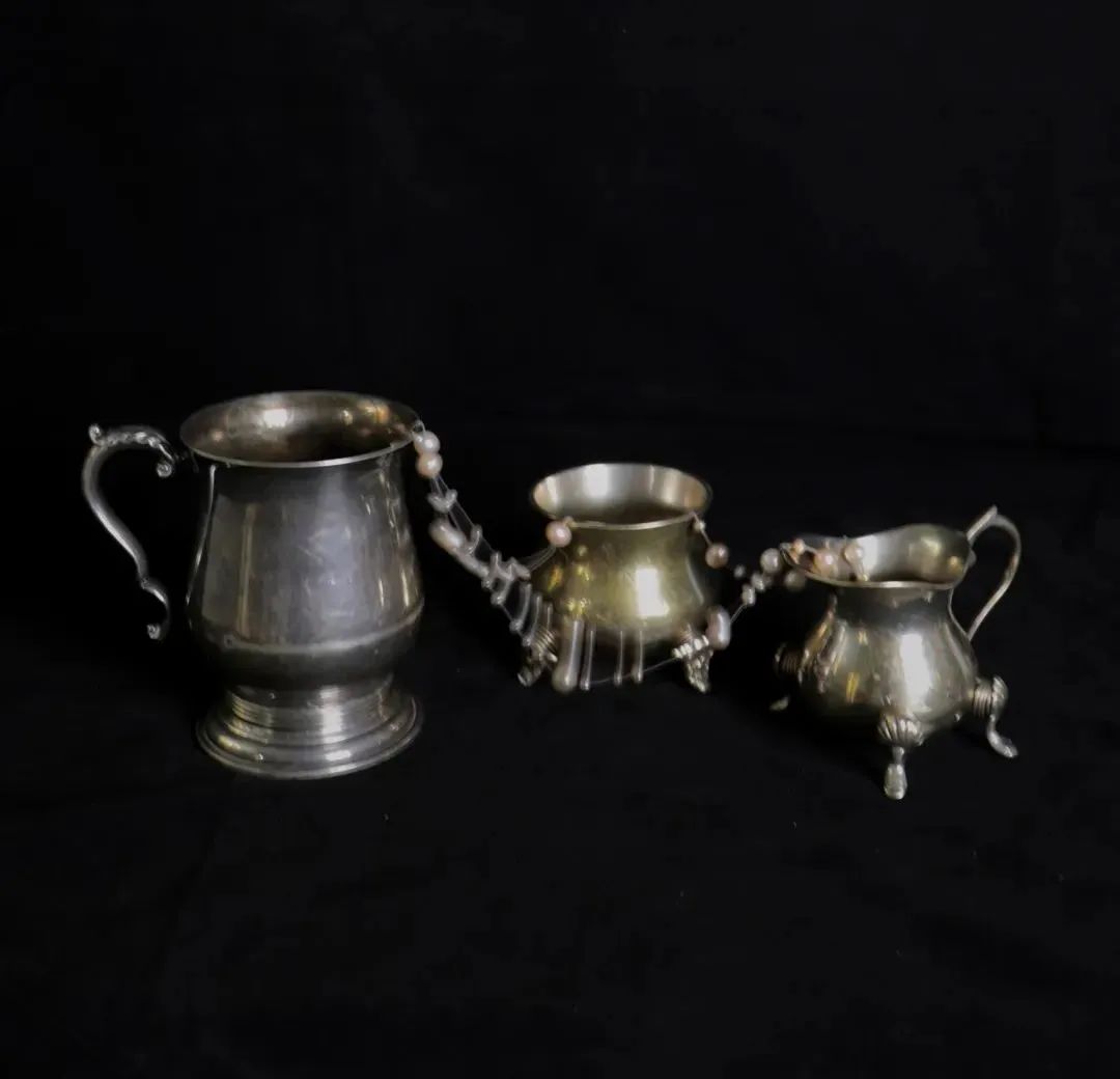 Antique Metal containers,Springs,Pearls,Silk