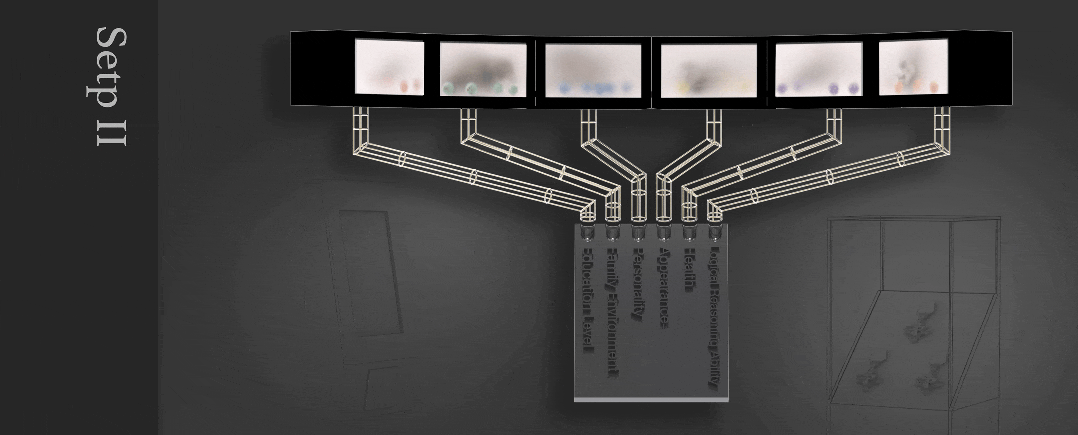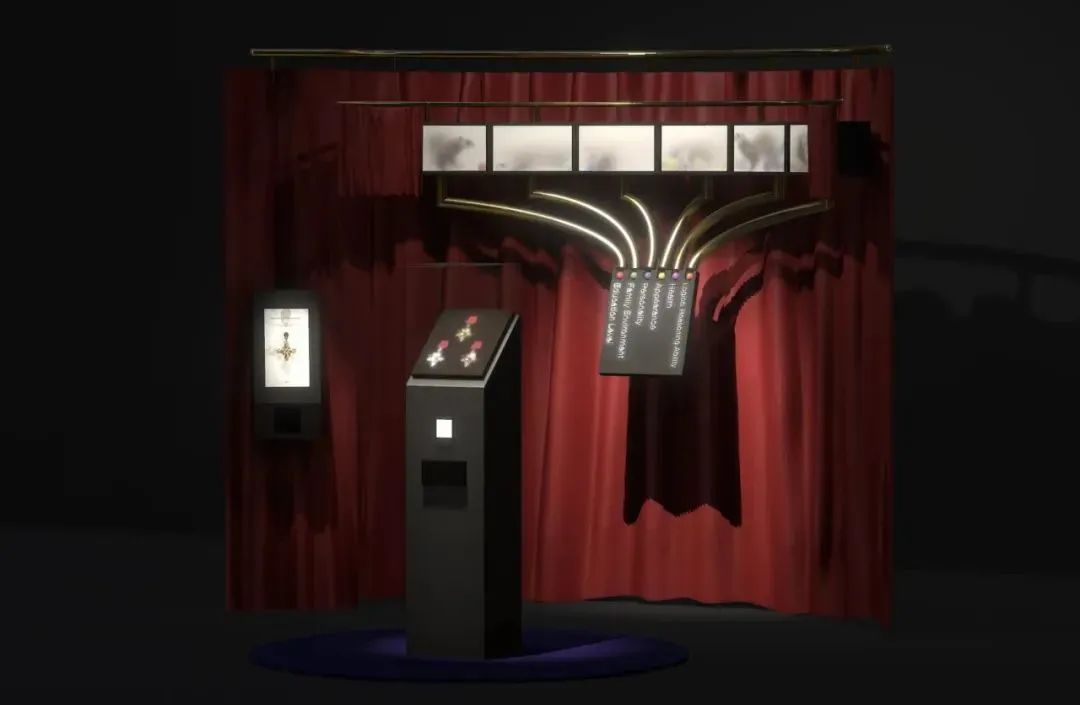 因此,Yiwei在設計中融合了無形超現實主義和與盲人有關的元素。為了隱藏視覺影響,他使用幕繡漆和涂漆來創造“可見”和“不可見”的空間,營造視覺、觸覺和聽覺之間的對比。結果,觀眾需要通過觸摸感受“不可見”的部分,并通過內置的傳感器芯片與之互動。