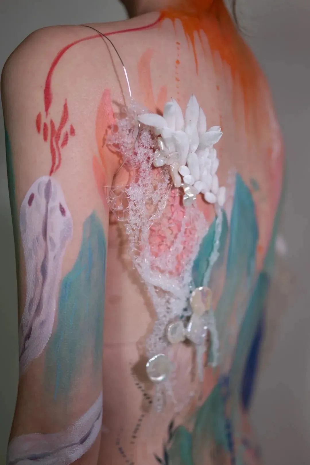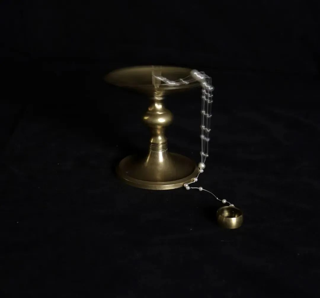 這件作品是一個蠟燭臺,上面串著一串隱喻成融化蠟燭的珍珠,還有可以佩戴和互動的戒指。它更多地表達了自我與其他事物之間的連接,更專注于自我和內在世界。