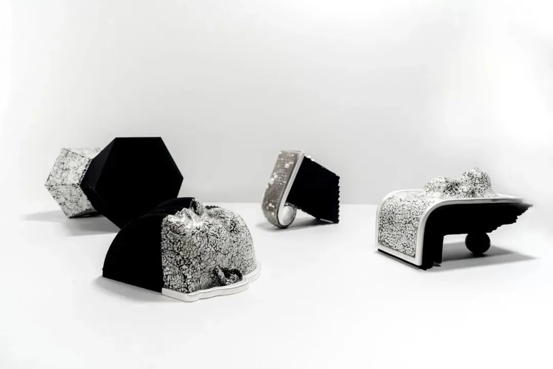 這個系列的作品基于藝術家Yiwei的問題:先天性盲人的夢境世界是什么樣的?在他們的夢中,他們只能通過觸覺、聽覺和其他感官,而沒有視覺。Yiwei以先天性盲人的夢境世界為主要元素,利用珠寶作為媒介,探討視覺與其他感官之間的關系。盡管視覺是我們體驗世界的重要工具,但今天我們暴露于人工、精心策劃的圖像和視覺刺激之中,限制了我們對世界的感知,導致對物體和文化的偏見和狹隘理解。因此,視覺體驗并不是我們體驗展示的唯一方式;我們應該關注其他感官。