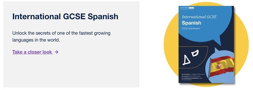 OxfordAQA的IG西班牙語旨在吸引和激發學習者,為他們提供獲取和交易技能,以在他們的新語言中茁壯成長。我們認為學習語言不僅僅是一項學術技能,它是發現新文化、國家和生活方式的門戶。