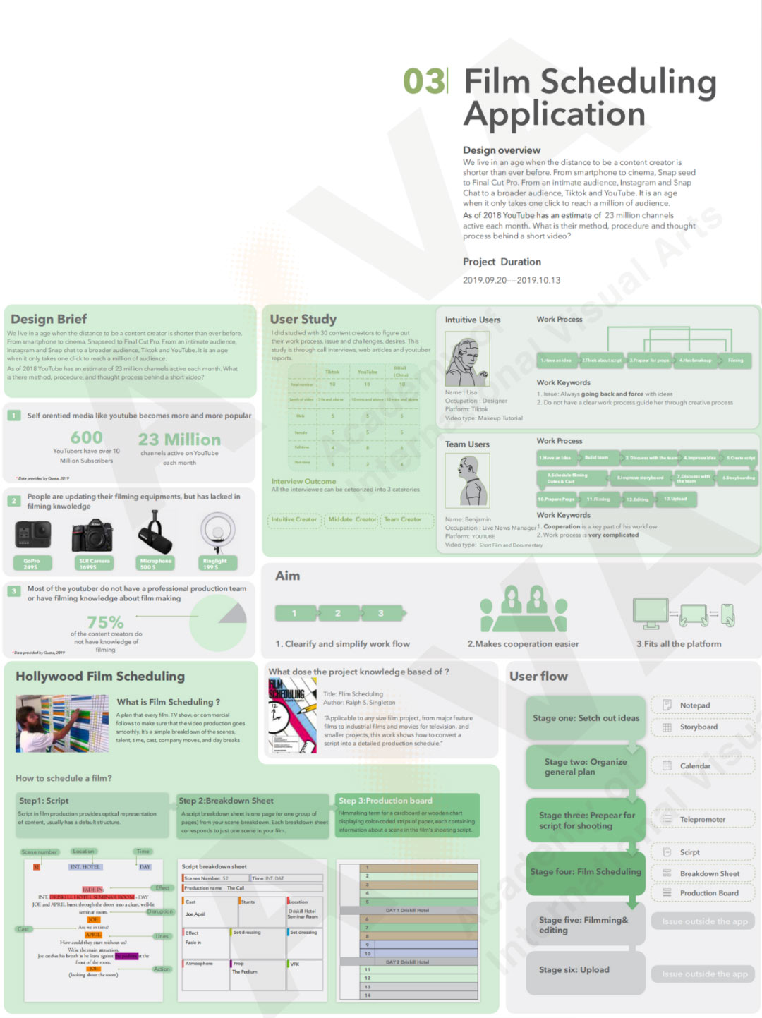 今天要分享的是Song同學申請交互專業(yè)的兩個優(yōu)秀作品集案例:《Film Scheduling Application》和《YongFu Temple Color Reform》