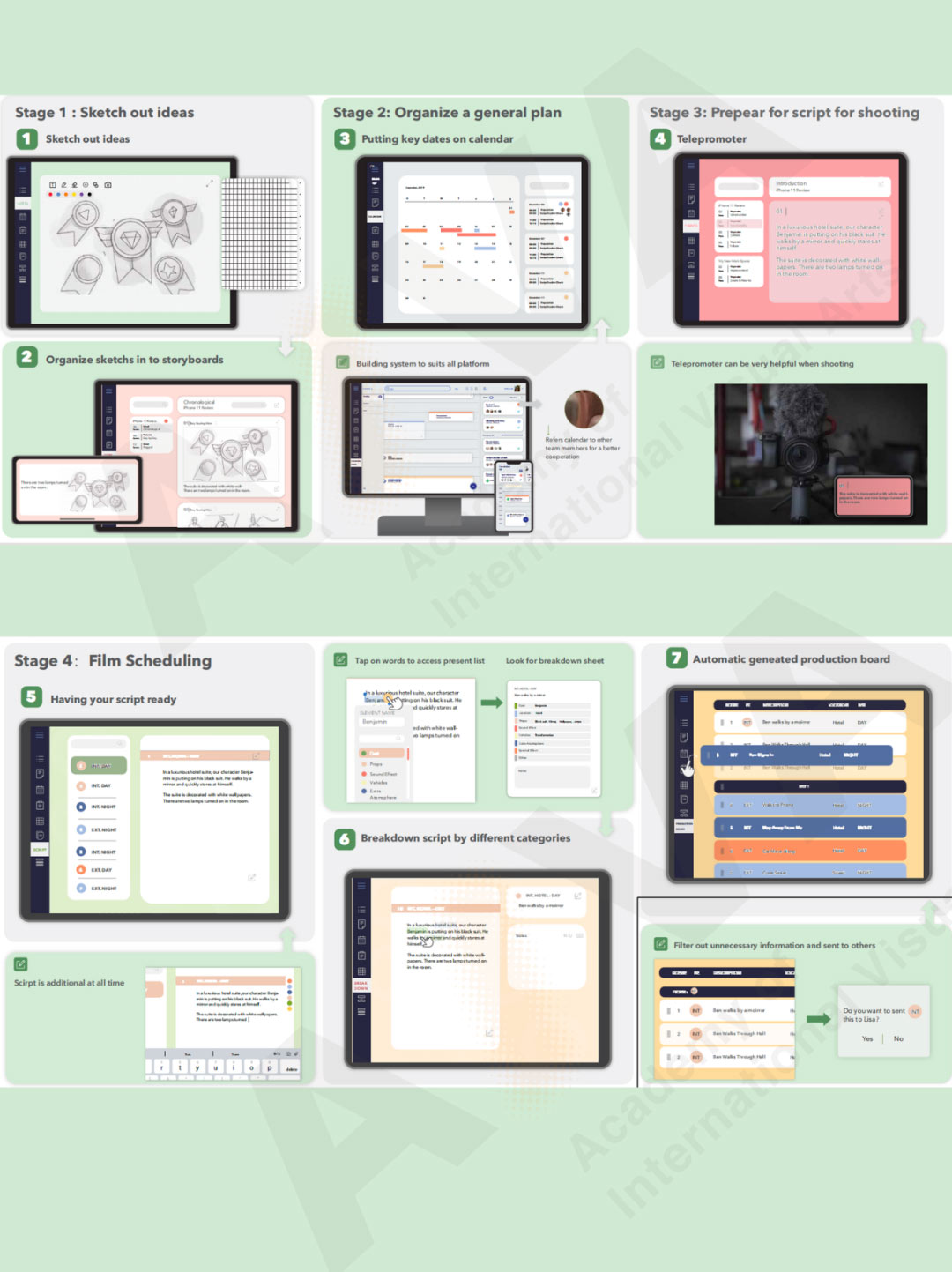 作品《Film Scheduling Application》 是一個主要服務(wù)于電影時間表的應用程序。作者將一部電影的制作拆解成不同的小板塊,并借助APP使得普通人也能簡單上手,將一些小的靈感迅速轉(zhuǎn)化成完整的流程。