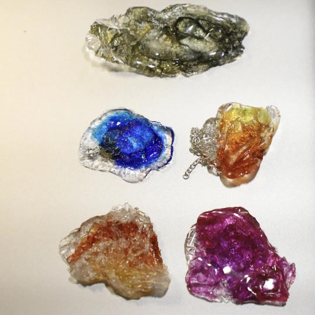 這個材料做手工的人應該比較熟悉,多數是用來做簪子上的水晶仿真花。所以剛開始我的思維就被限制了,一直糾結于造花液所呈現出來的造型,而忽略了材料本身的可能性。