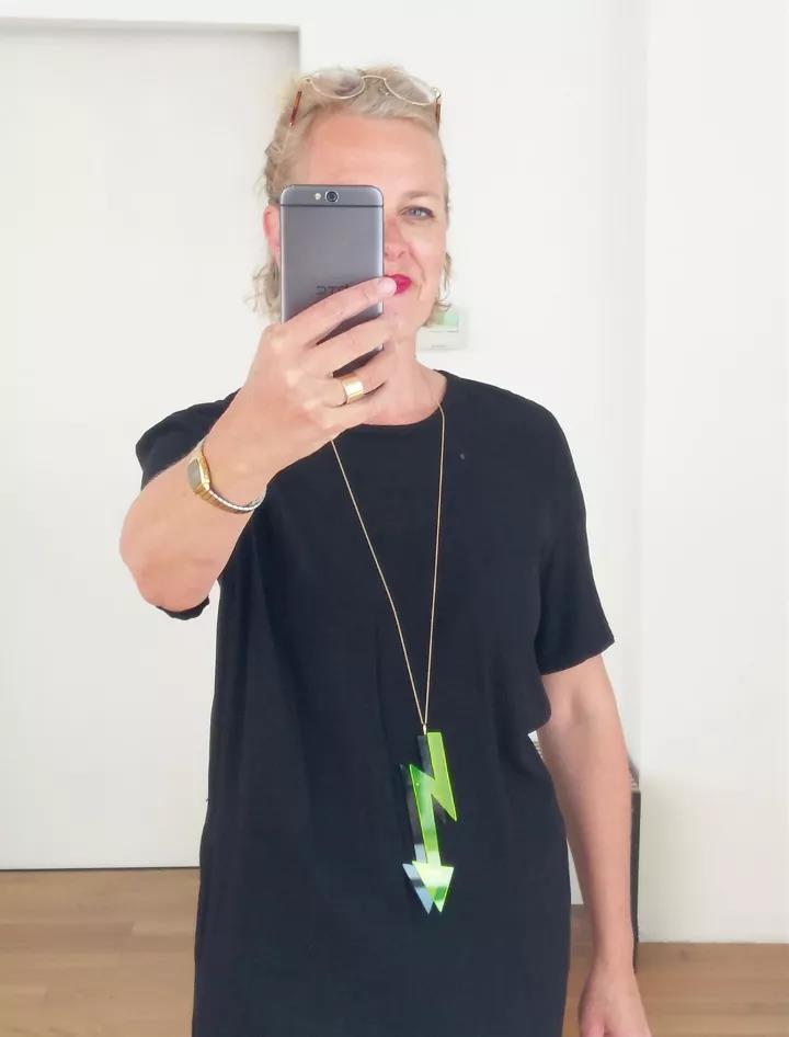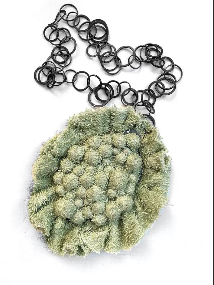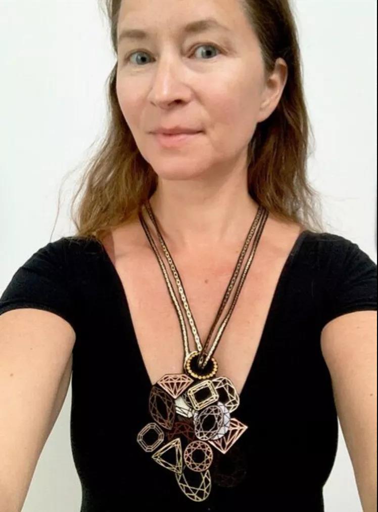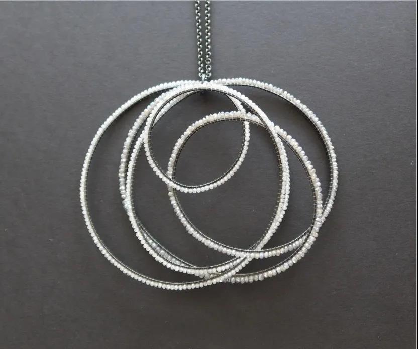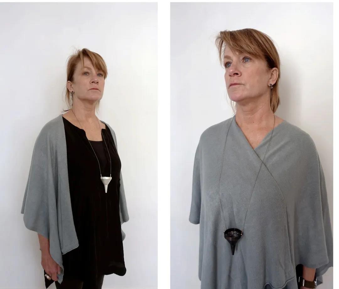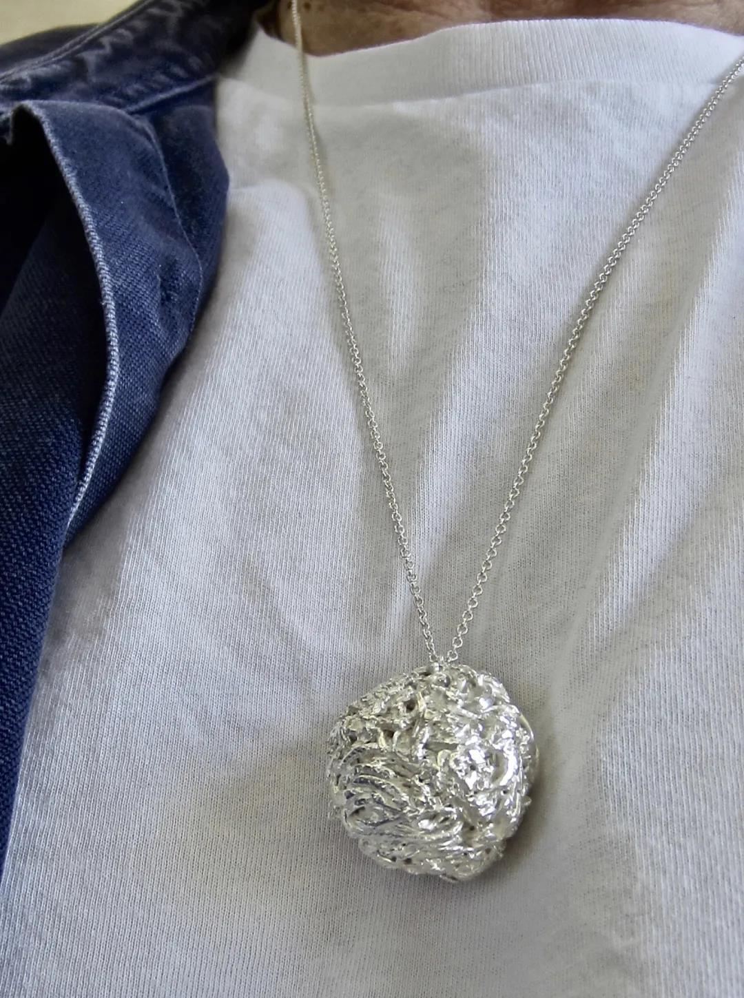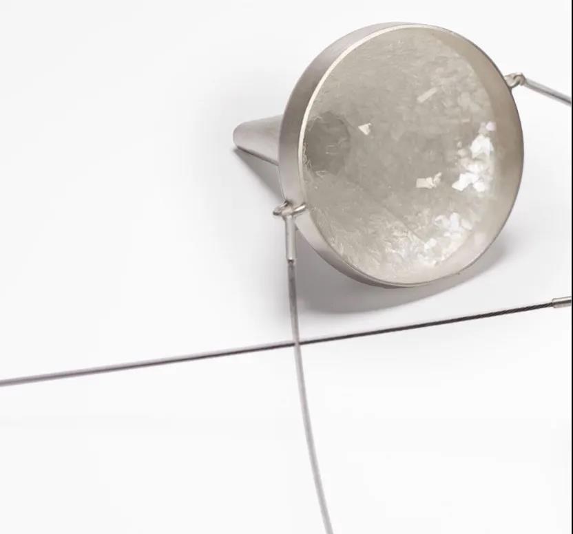 Biba Schutz的作品表現了她在這個特殊時期身心、創造、情感上的躲藏——球體被包裹與隱藏,他們的秘密被擋在了外面;而可轉向的項鏈則能讓你在一側可以看到包裹的球體,在另一側看到的卻是隱藏和被保護的球體。作品的每個部分都有著脆弱、經歷、恐懼和某個時間的不同含義。