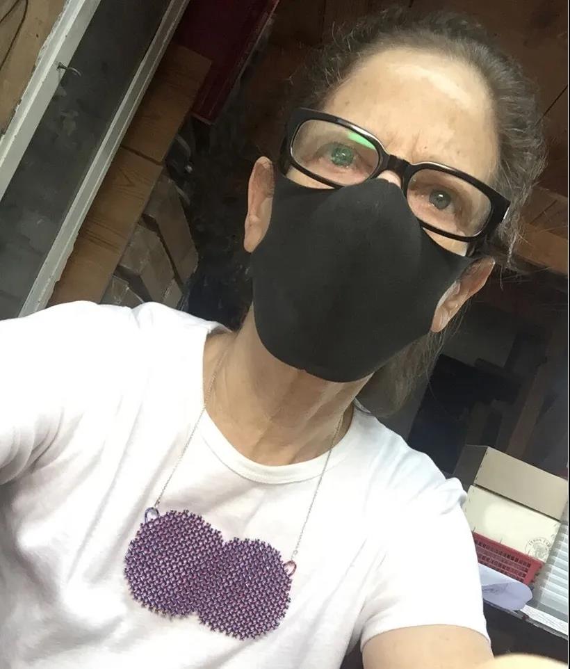 Gallery Loupe的Patti Bleicher已邀請40多個藝術家對COVID-19做出回應。這本應該是一個球體和一個吊墜。