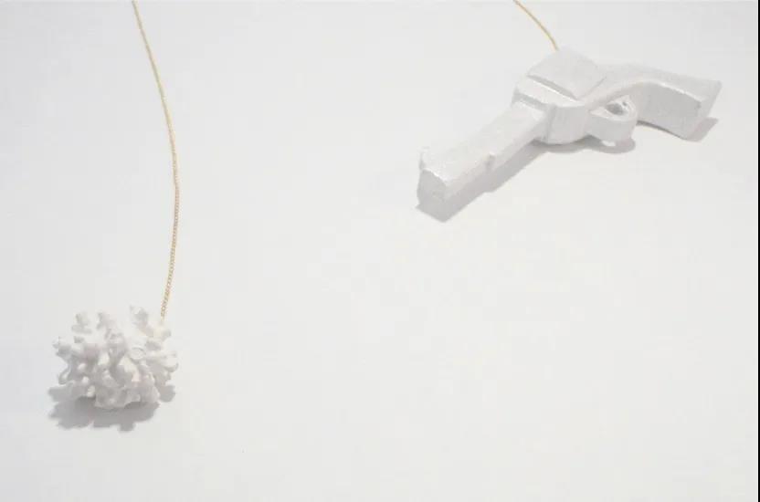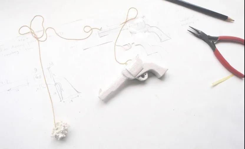 這個名為 MENDING 的吊墜就表現了人體成形、反彈、愈合的這種能力。
