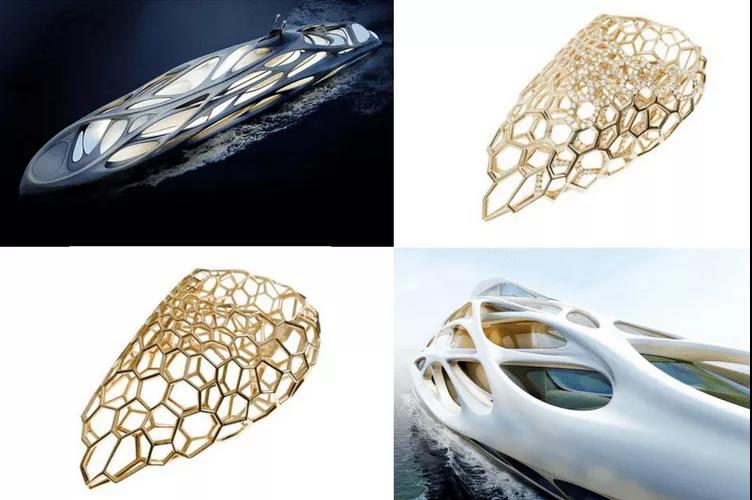 Zaha Hadid為Caspita設計的手鐲,以及其為Blohn&Voss設計的游艇