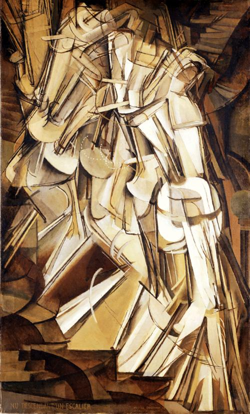 杜尚的《走下樓梯的裸女》呈現了主體“裸女”步下樓梯每一瞬時間里在空間中留下的“存在”印記,畫面有延時攝影的逐幀感 圖源:網絡