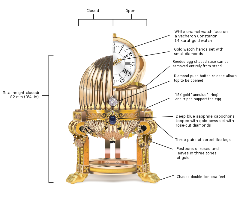 彩蛋總長8.2厘米,主體由黃金制成,