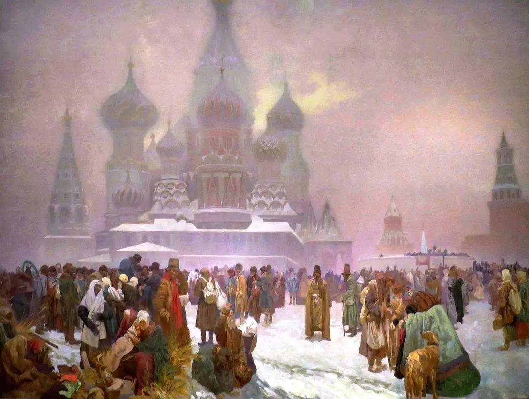 盡管穆夏因其感性的“穆夏風格”被世人所熟知,但當時的穆夏并不滿足于商業的成功,而想要為祖國貢獻自己的力量。1928年穆夏將所創作的《斯拉夫史詩》系列二十幅油畫捐獻給布拉格市,雖然這個系列回響甚微。
