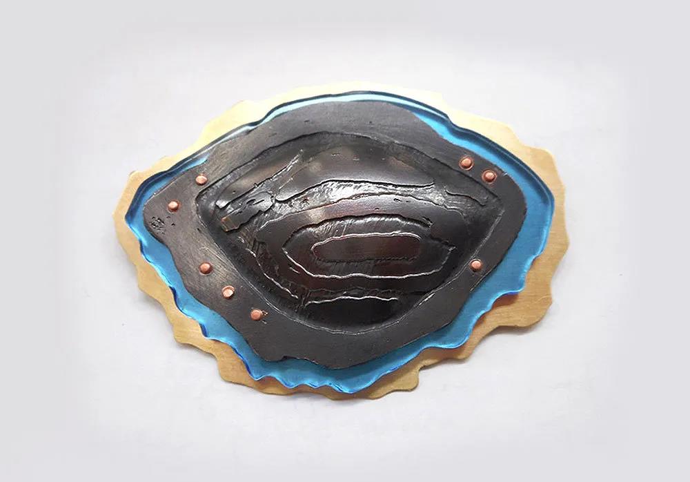 下面兩只皮帶扣是由美國藝術家Jesse Bert及其學生通過鹽水蝕刻完成的。鹽水蝕刻是一種奇妙、全能且無毒的技術,了解它的基本制作工藝就非常容易上手。