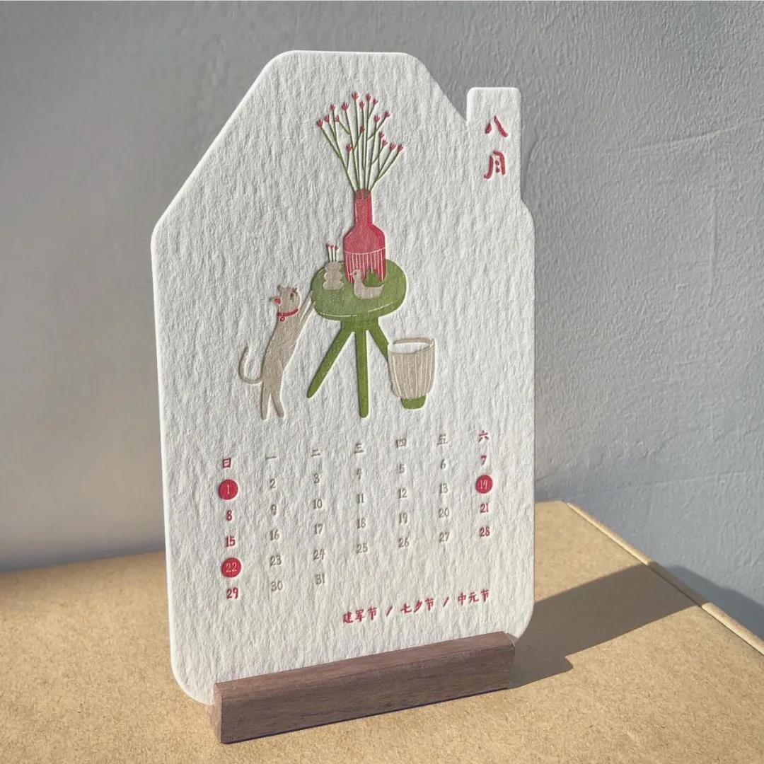 活版印刷月歷的設計目的則更為商業化,年月日的排列組合功能性體現地非常強?;畎嬗∷⒃職v的尺寸大多與明信片相似,適合擺放在桌面上或者是貼在墻上,實現其功能性與裝飾性。