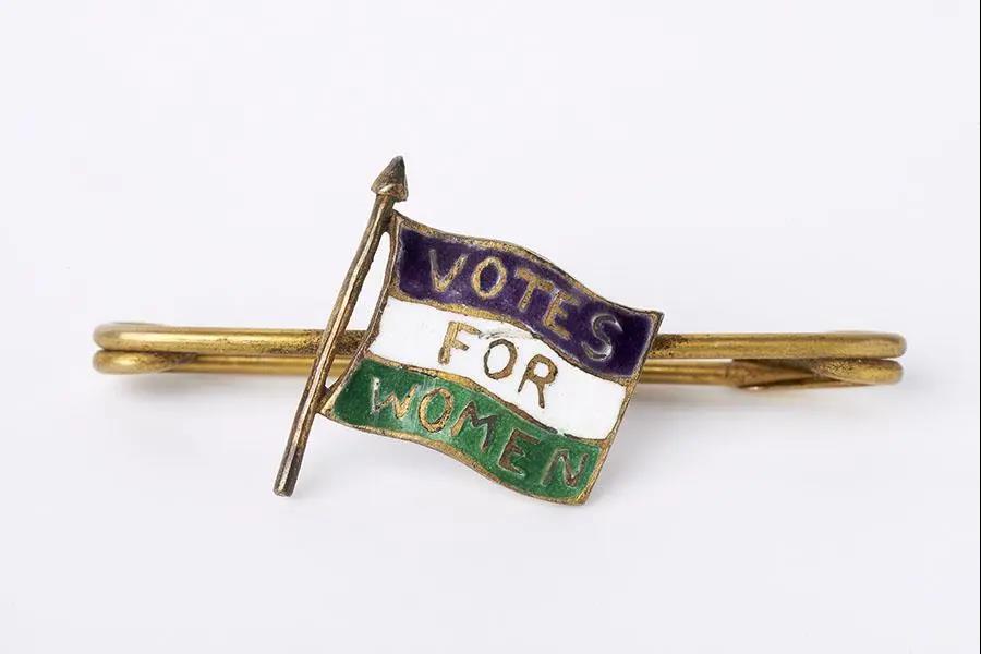 首飾也未曾缺席這場意義重大的歷史事件。許多人開始佩戴包含這三種顏色的首飾,并且,出現(xiàn)了勛章形式的胸針,作為參與這次運動的女性“斗士”們的獎勵。