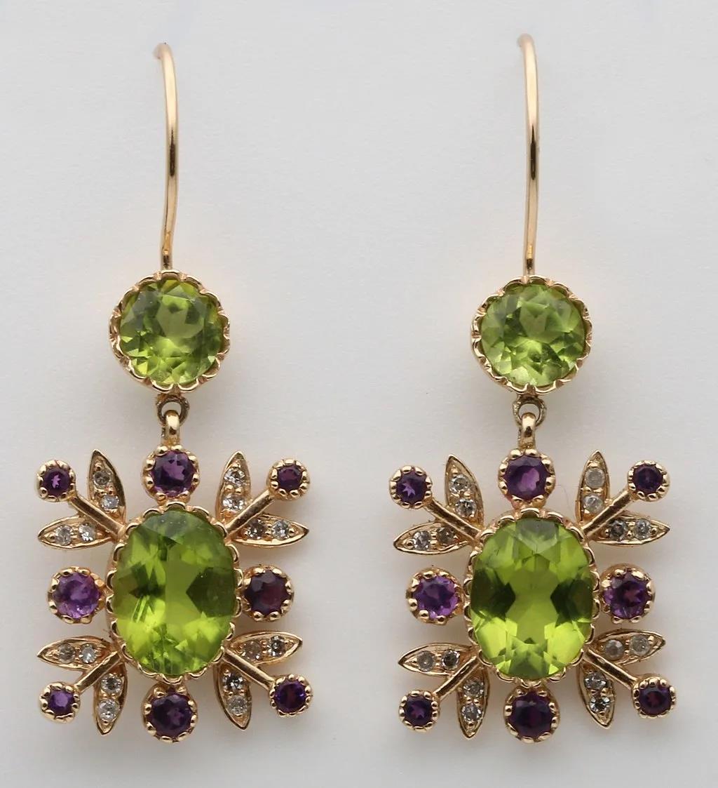 而首飾當中,綠色常常用祖母綠、橄欖石來表達,白色則多用珍珠、白珊瑚等玉石;紫色常用石榴石、碧璽、紫水晶等寶石。有時,這些顏色也會被簡單而色彩明麗的琺瑯所替代。