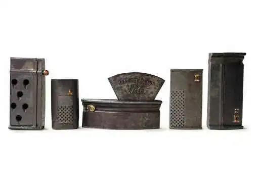“改造的錫罐頭,鋼,鐵,銀,寶石、家用烘焙工具,餅干罐和藥罐,常常成為戰爭時期女性居家角色的視覺意象。舊錢包取下的皮革與古舊的骨質代幣則隱喻了錢幣。這些對收藏家以外的一般人不再具有意義的物件,經過重置提供了新的敘事:告訴人們過去的女人的故事。