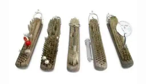 Repurposed Glasgow brush, silver, pearl, gold, mirror, steel.