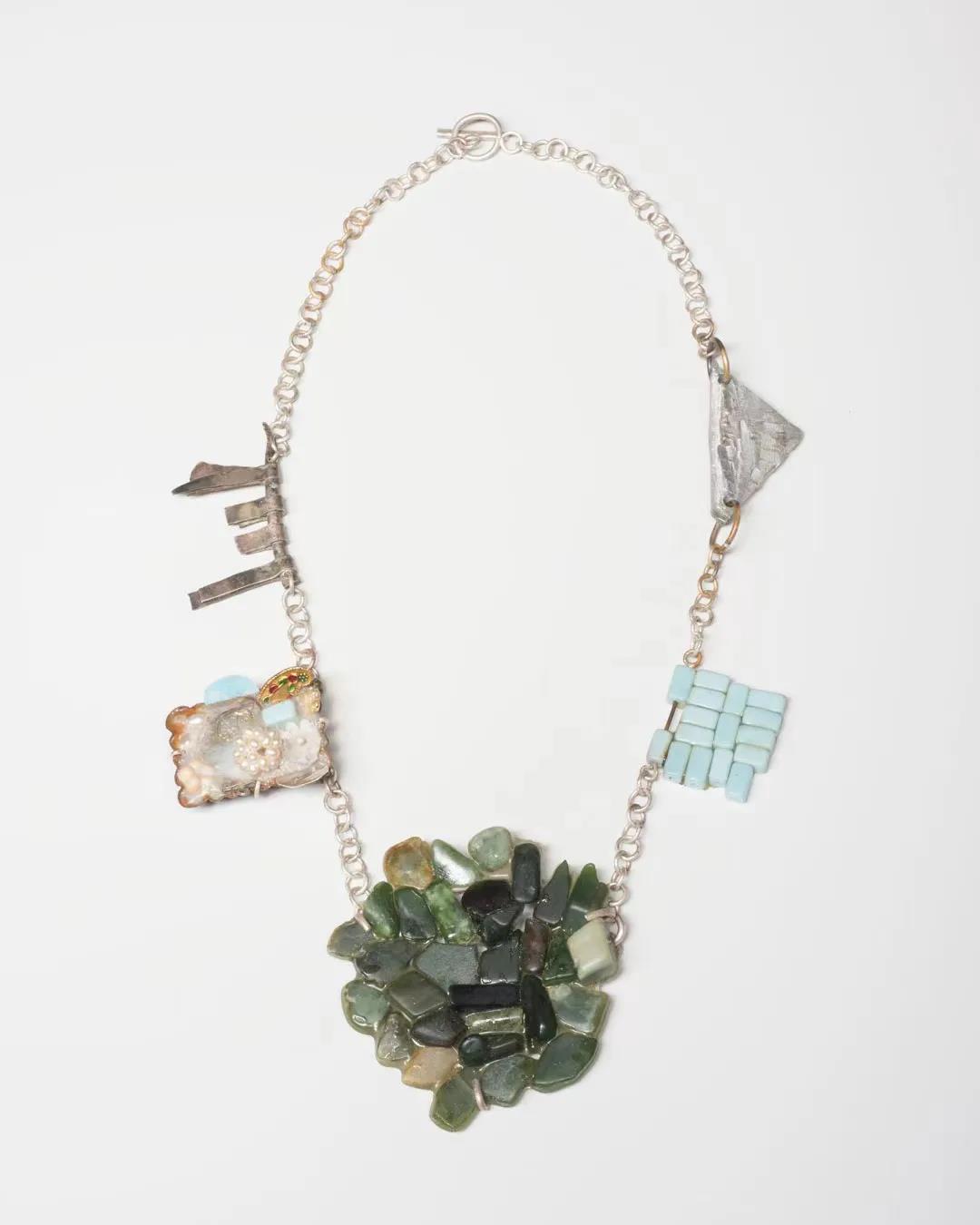 金屬是最常見的傳統首飾制作材料,然而,當代首飾中,越來越多的藝術家通過非傳統的材料去創作首飾;比如回收的硬幣、瓶蓋、老化的金屬配件、老舊毛巾、手提電話和洋娃娃部件。這些東西舍棄原本的功能,與柔和的色彩結合變成一件件項鏈、吊墜盒手鐲。這是一個緊張的回收過程。物品本來要被扔掉或者遺棄,藝術家們經過特殊的選擇讓它們以不同的方式回到生活中。
