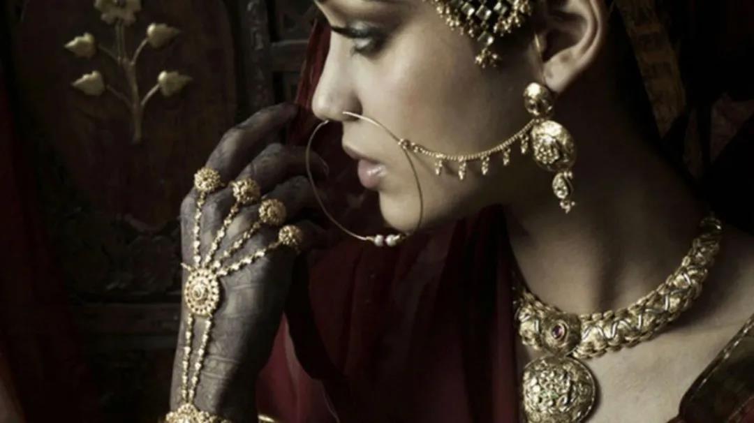 在印度,手飾主要是指與鏈條相連的花,即haath phool(haath:花,phool:手背),也被稱為hath kamal、hath pankaj等。造型來源于蓮花,在早期是新娘專屬的裝飾品。一說起源于波斯,在莫臥兒王朝入侵時傳入了印度。