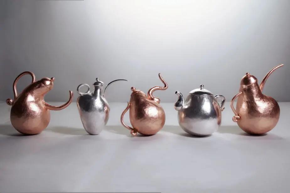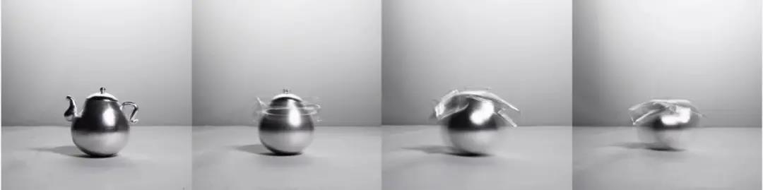 紀夏雨的《壺鬧》在我看來則是真正意義上將器皿擬人化。她的作品意在結合“不倒翁”的歷史背景和獨特結構創作出一套對當代勸酒文化進行反思和批判的酒器。通過人在使用“不倒翁”結構的酒器時的不可控的行為語言進行暗喻。