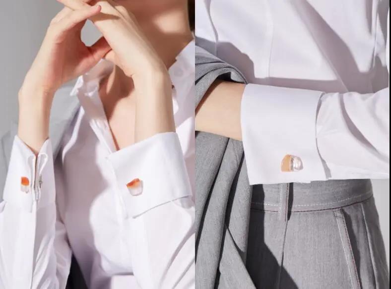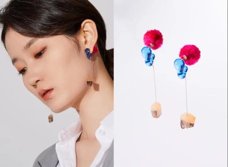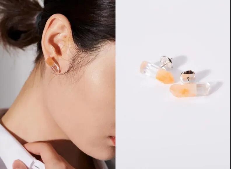 耳環(huán)雖采用了不對稱設(shè)計,但佩戴時卻帶來了一種和諧的平衡與張力。通過對透明戈壁石的特殊處理和運用,簡潔的幾何設(shè)計語言保留了天然的石材特質(zhì),為都市獨立女性帶來一份內(nèi)心的平靜。