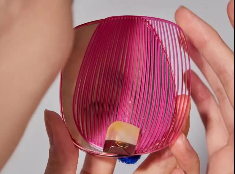 在 Linna 眼中,當代藝術(shù)首飾不僅能表達藝術(shù)家個人的情感,還能憑借這種創(chuàng)作力與他人產(chǎn)生共鳴,表達一種社會背景下的情緒。化妝鏡這個小物件是生活在國際化都市的現(xiàn)代獨立女性必備的生活用品,Linna 希望當她們在使用這面鏡子時,可以通過鏡中的條紋看到自己看不見的臉,從鏡子的反映中找到自信和真實的自己。