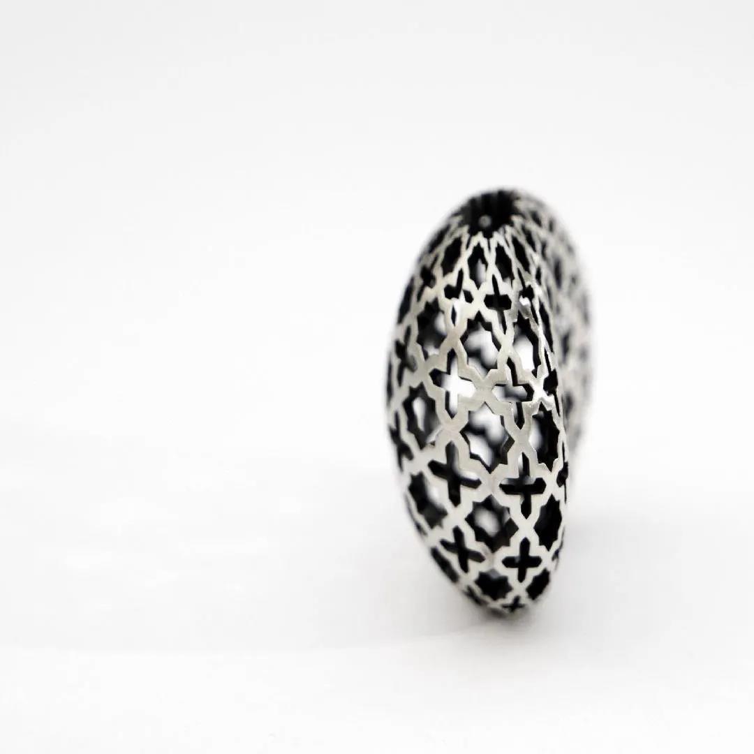 “Casaz”系列將伊斯蘭幾何圖案與3D打印技術(shù)相結(jié)合,擁抱了參數(shù)化設(shè)計與磁鐵運用的可能性。這一系列與當?shù)毓そ尺M行了密切合作,通過首飾所傳達的情感力量,將構(gòu)成個體身份的個人記憶與共同的社會價值觀聯(lián)系了起來。