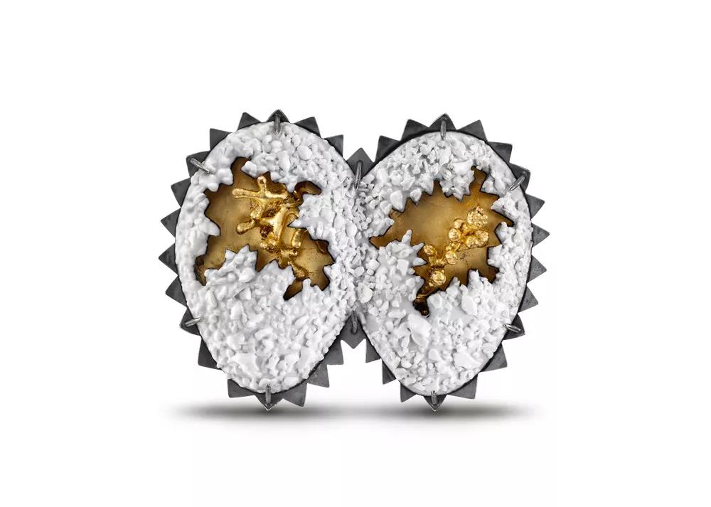 荷蘭與弗蘭德藝術史學家Nichka Marobin 在2017-2018間策劃,由Hannah Gallery(by Klimt02)呈現的展覽The Alchemical Egg上,四位受邀的首飾藝術家通過遵循黑化(nigredo)、白化(albedo)和赤化(rubedo)通過使用火、金屬與琺瑯來重塑當代煉金術的道路,讓我感到無比震撼。四位藝術家在材料、視覺形式、心理學、神話隱喻等不同的方面將創作的發展推到極致。在思維的無窮無盡中,不斷的突破創作的可能性。
