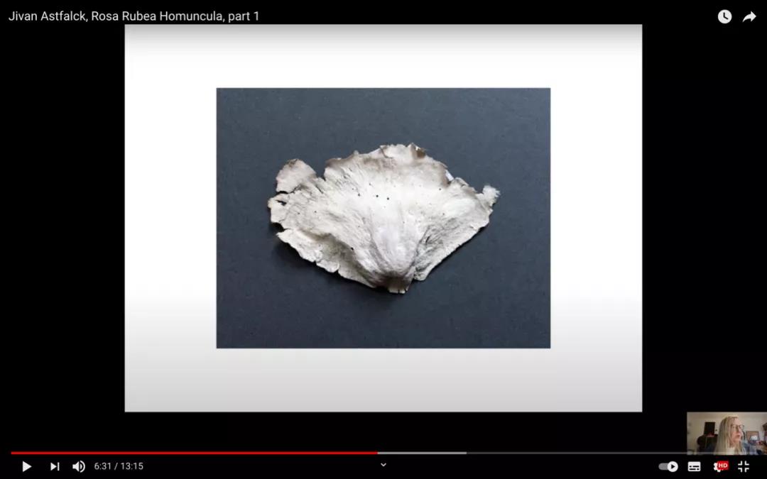 Jivan Astfalck教授的Rosa Rubea Homucula系列創作中,希望通過使用隱喻性幫助來描繪投入情感上的新的創意表達與呈現形式。在《Rosa Rubea Homuncula》講座中,在赤化(rubedo)的過程中,嘗試萃取玫瑰的精華,她使用稀釋的銀黏土附著在玫瑰的表面來制作。