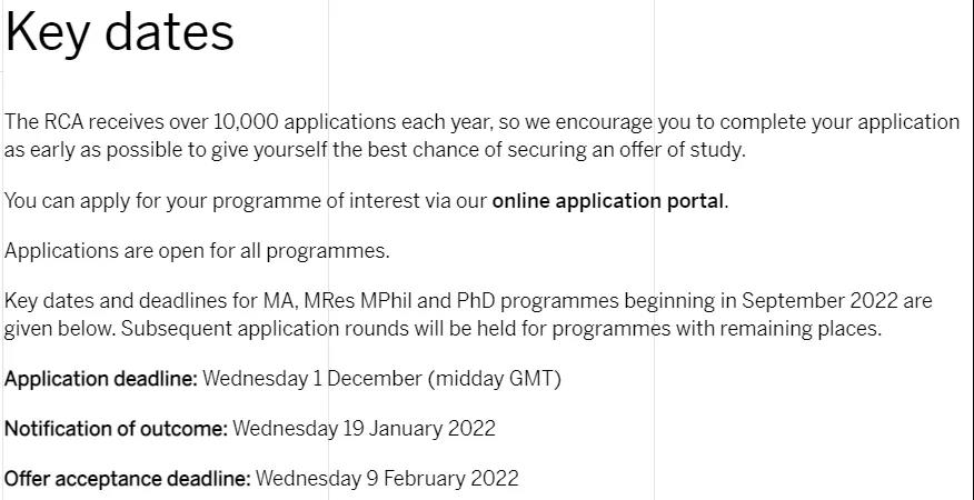 目前官網(wǎng)只公布了一個(gè)批次的申請(qǐng)截止時(shí)間,由于去年因疫情選擇延期的學(xué)生數(shù)量較多,因此目前不排除今年只有一輪申請(qǐng)的可能,想要沖RCA的同學(xué)們一定要把握住機(jī)會(huì)。