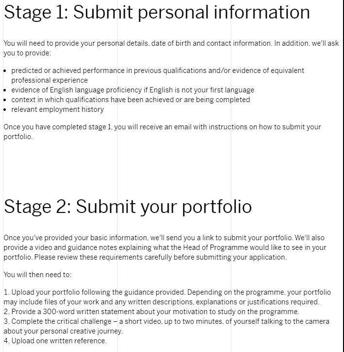 在提供基本信息后,申請(qǐng)人將收到作品集提交鏈接,以及一段視頻及指導(dǎo)說(shuō)明。按要求提供: