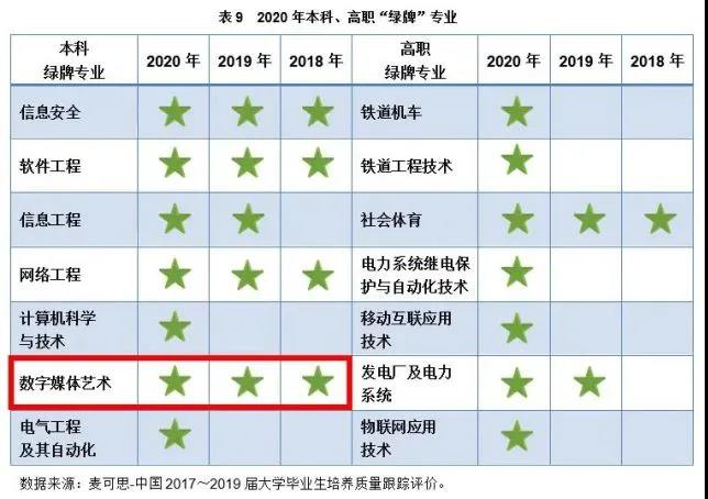 在權威機構麥可思發(fā)布的《2020年中國大學生就業(yè)報告》中,數(shù)字媒體藝術專業(yè)連續(xù)4年獲得綠牌。