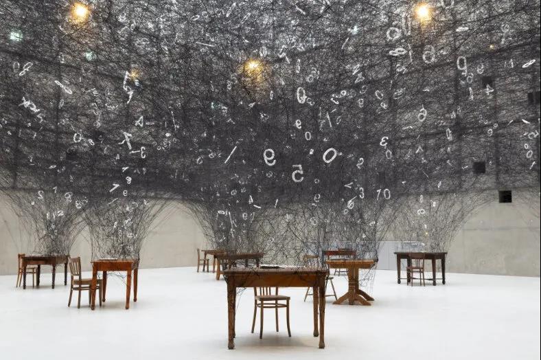 鹽田千春1972年出生于大阪,工作生活在柏林。1996年從京都精華大學(xué)油畫(huà)系畢業(yè)以后,她搬到德國(guó),師從Marina Abramovic。她以線條聞名于世,作品包括裝置、行為、錄像。鹽田千春創(chuàng)造復(fù)雜龐大的沉浸式線條經(jīng)脈式的結(jié)構(gòu)裝置,作品中用鞋子、鋼琴、椅子來(lái)組合。