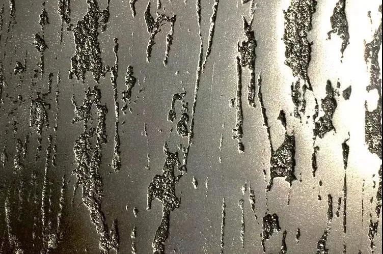質(zhì)地硬的金屬表面肌理邊緣輪廓清晰硬朗,肌理質(zhì)地較軟、延展性好的金屬表面肌理起伏大但邊緣較為緩和;一般以鍛造肌理居多。