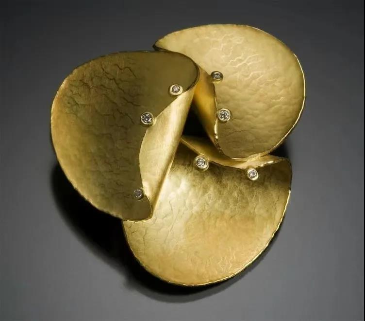 當代首飾設計中,金屬表面肌理存在的形式各有不同,表現(xiàn)方法及工藝也多種多樣。首飾設計師提取各種肌理進行推敲、對比、重構(gòu)后選擇最具代表性、最可將其質(zhì)感和作品敘事相結(jié)合的肌理融入到作品里,創(chuàng)造出人為的、藝術(shù)的金屬肌理之美。