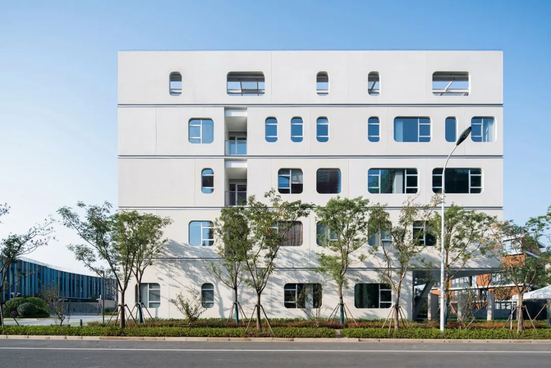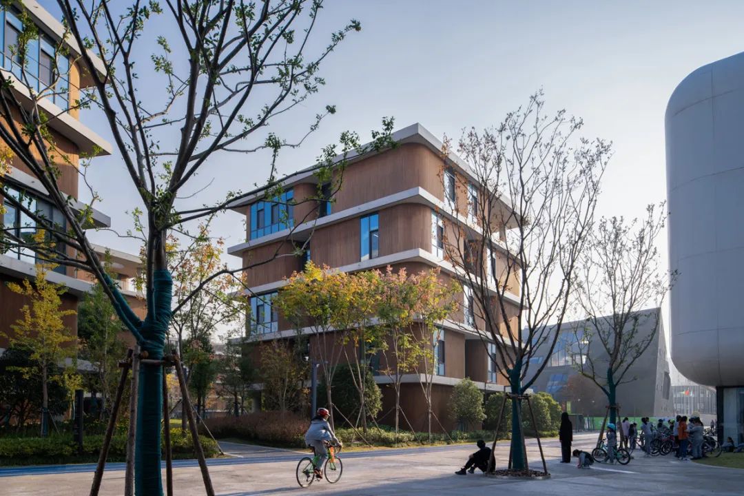 上海青浦平和雙語學校的校園設計由豐富的單體小建筑和景觀組成一個有機聚落,重新定義了現代教育機構的面貌。這些獨特的建筑類型中,既有立方體的教學樓、行政實驗樓,也有螺旋宿舍和自由形態的幼兒園。閱讀、體育和藝術作為當代教育的重要組成部分,它們所對應的圖書劇場、運動食堂和藝術中心也成為這座校園的三座核心建筑。