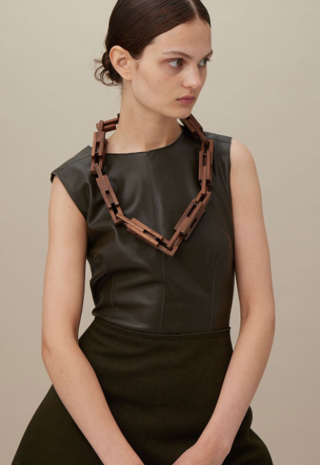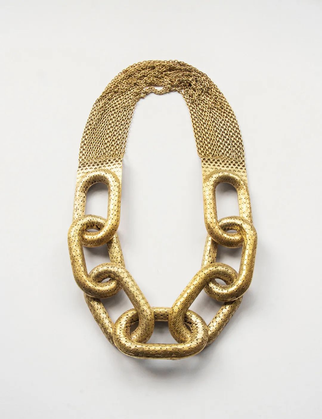 Veronika FabianNecklace: Biglink necklace, 2018Gold plated brass (Soldered, flattened, rolled, pressed chains)30 x 4 x 20 cmPhoto by: V. Fabian