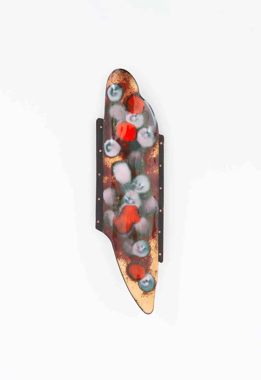 Brooch: Spawning, 2021Copper, vitreous enamel, stainless steel 15 x 5 x 3 cmPhoto by: Isabella Capezio