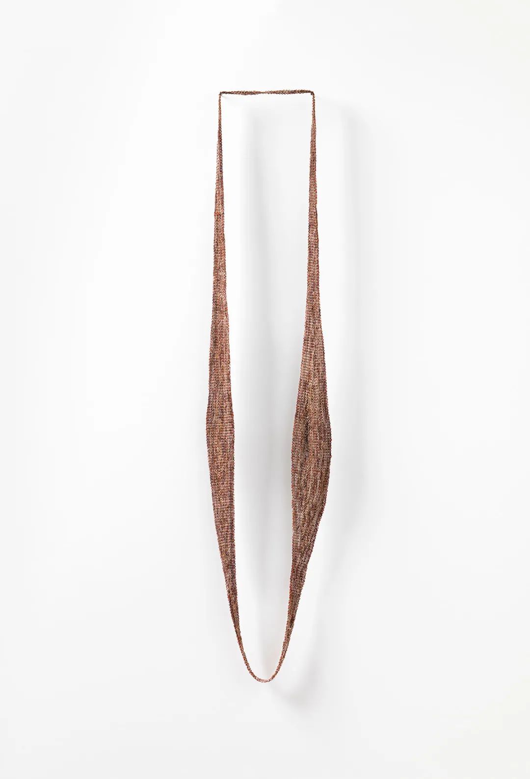 Necklace: Twins, 2021Colored silver and silk treat.80 x 2.5 x 0.4 cmPhoto by: Dries Van den Brande