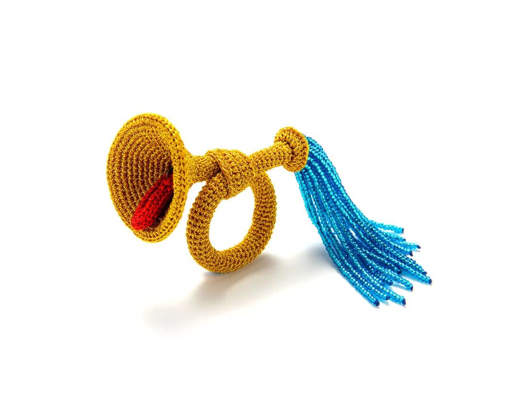 Each of her pieces tells stories, but not those about standing and material value or spirituality and mythology. No education or special knowledge is required to play along with the associations in her work. Instead, her items of jewelry function on a very direct level and are understood equally well by people all over the world.
