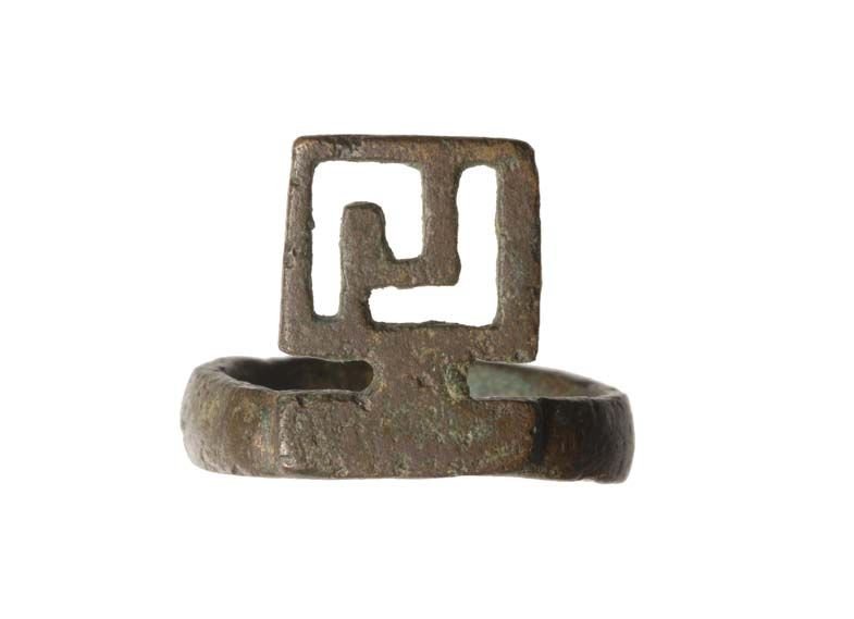 在同時期的作品中,還有一件青銅鑰匙戒指: