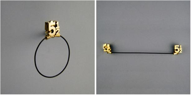 《5 ?戒指》是《Body Points》 系列中的作品之一,這枚戒指由18k金與鎳鈦合金絲制作。記憶金屬使戒指可以更加貼合佩戴者的手指,提供了更加舒適的佩戴體驗。